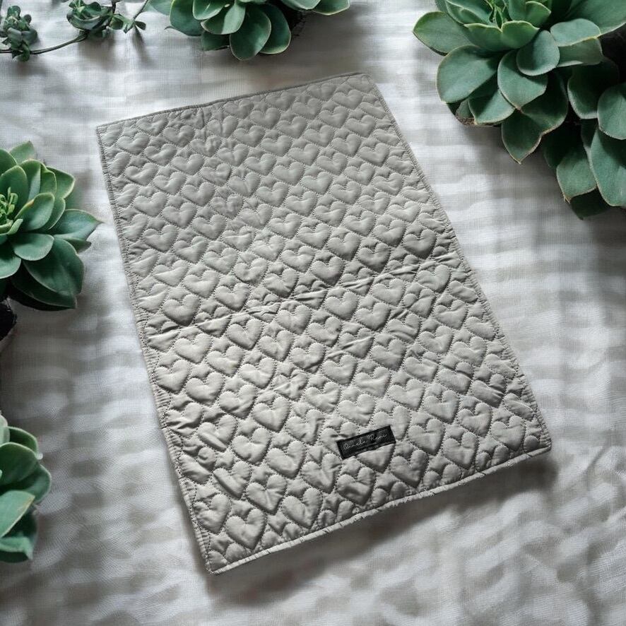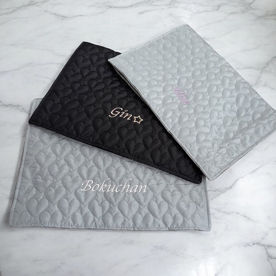 シンプルカフェマット*ハートキルト グレー 刺繍 名入れ うちの子刺繍
