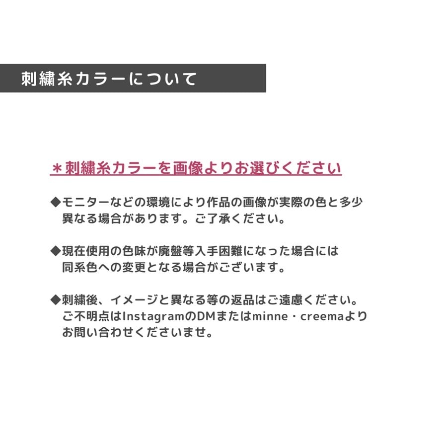 ◆刺繍後、イメージと異なる等の返品は承れません。