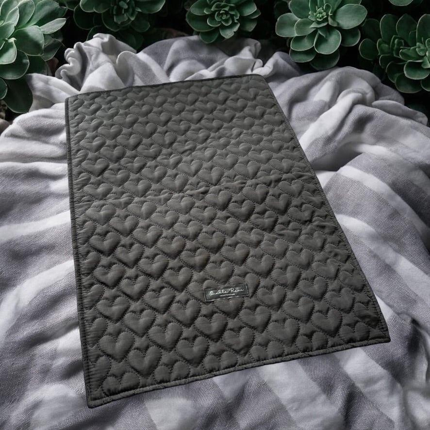 シンプルカフェマット*ハートキルト ブラック 刺繍 名入れ うちの子刺繍