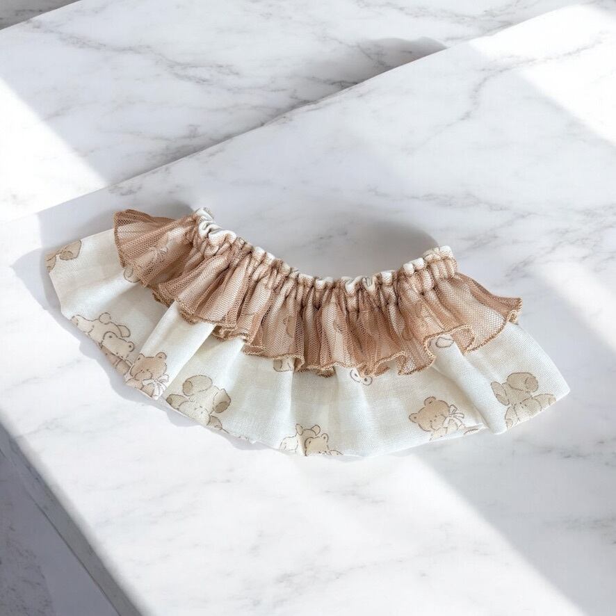 大人気くまちゃん生地でフリルを+して可愛さ盛り盛りのケープです♡