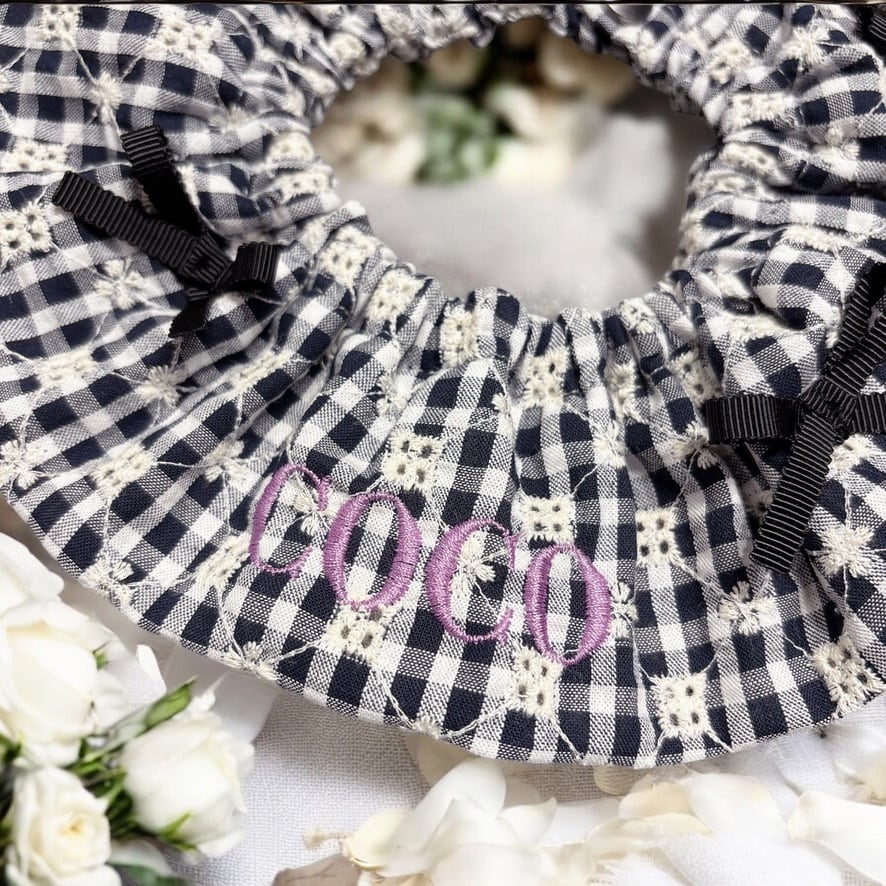 【再販】おめかしcotton embroidery lace cape / black / うちの子刺繍/スタイ/ケープ/ネーム/バースデースタイ/お誕生日スタイ/ おしゃれ