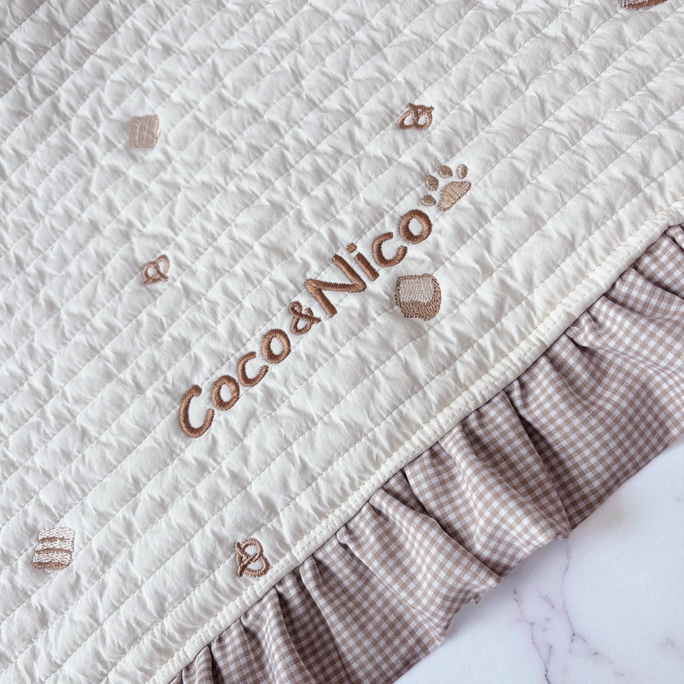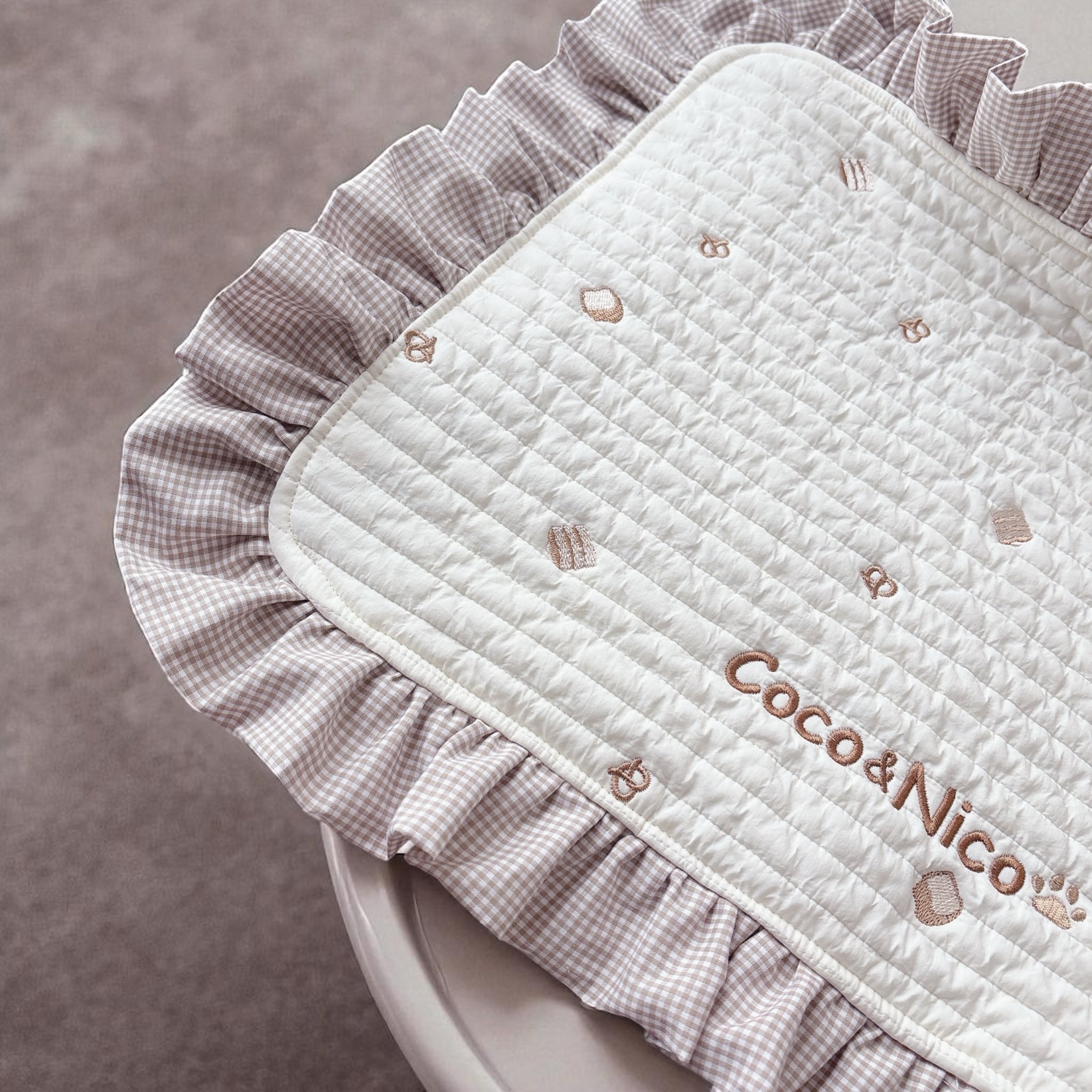 パン生地♡【"愛犬がくつろぎ上手になる"カフェマット】たっぷりフリルカフェマット/うちの子刺繍/うちの子/カフェマット/お出かけ/お散歩 / 犬