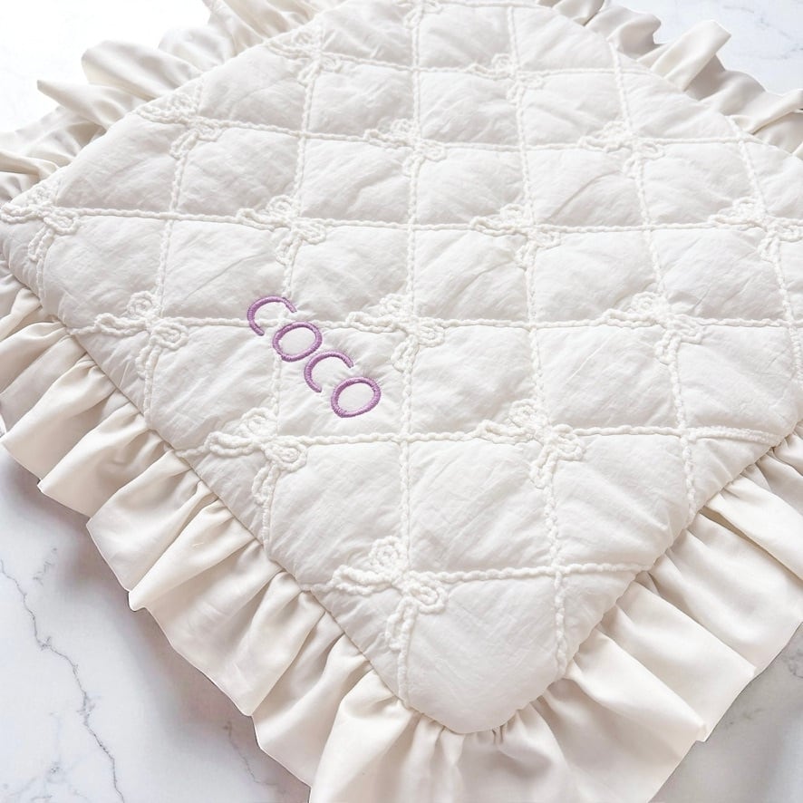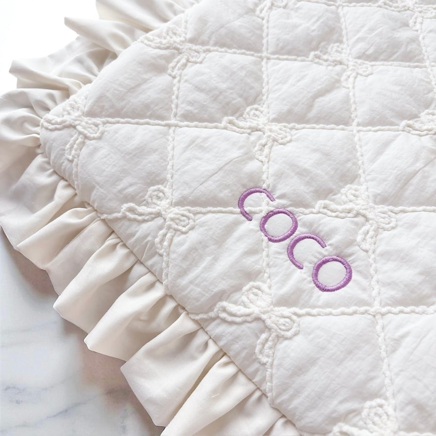 ニッティングリボンキルト生地 たっぷりフリルカフェマット/うちの子刺繍/うちの子/カフェマット/お出かけ/お散歩 / 犬