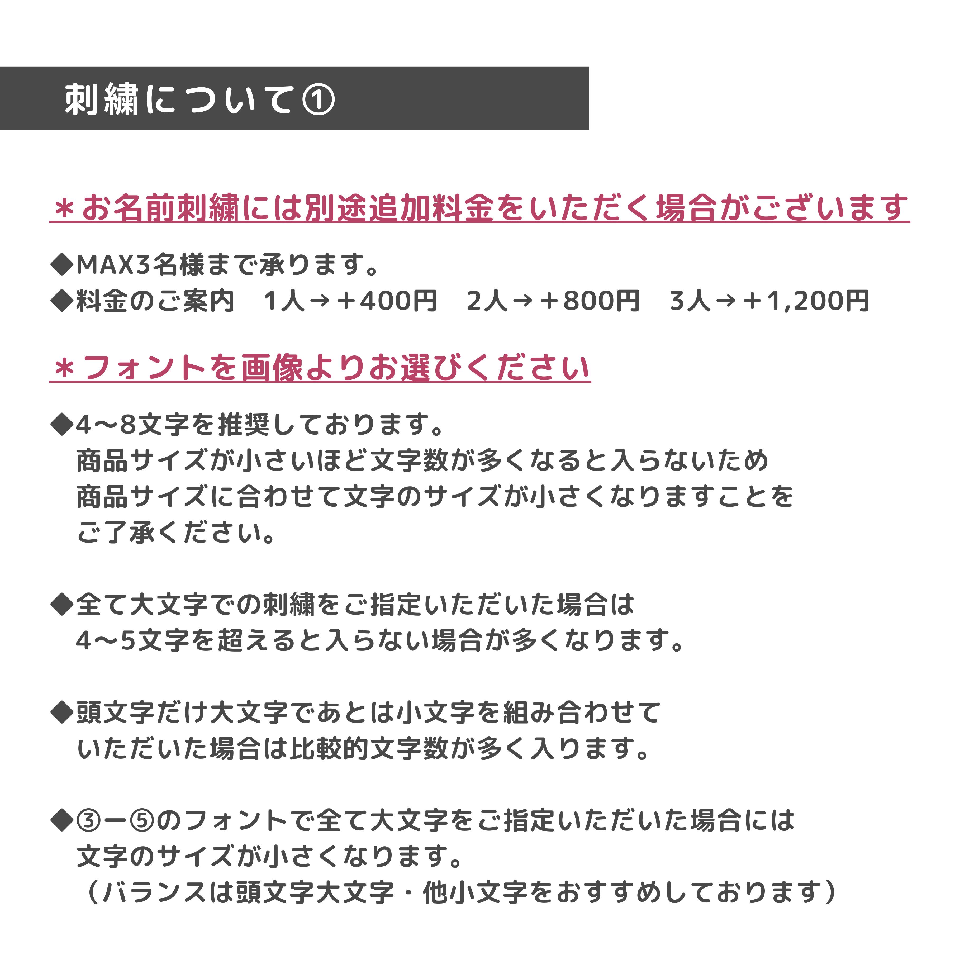 刺繍ありの場合は、備考欄に必ずお名前のご記入をお願いします。