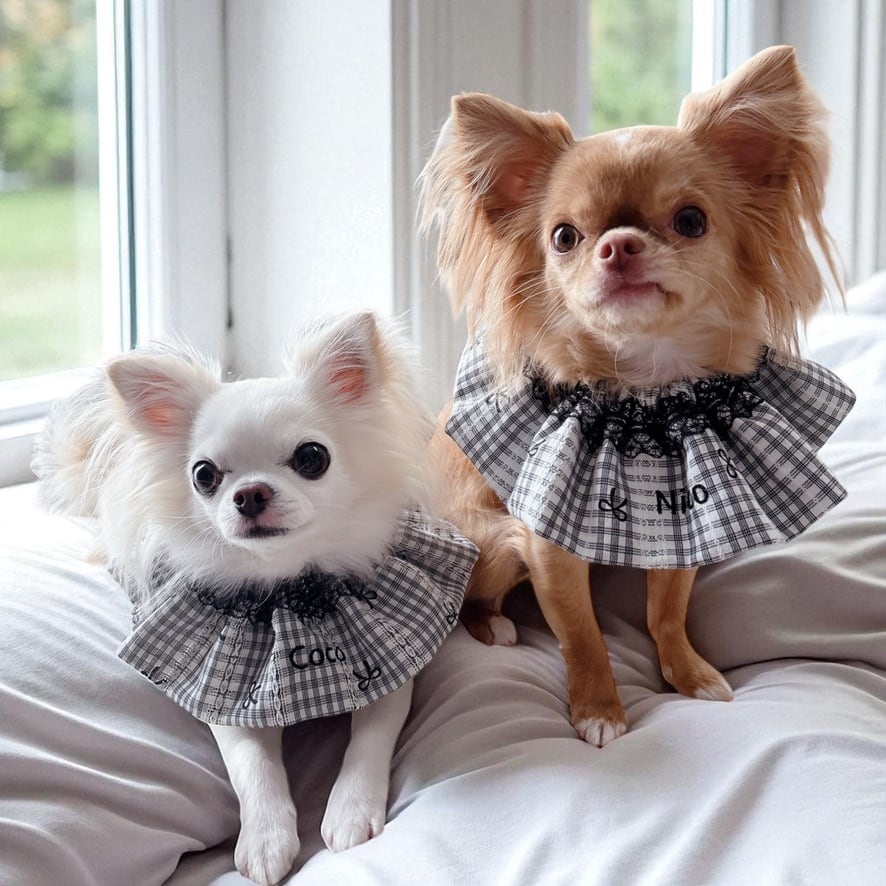 (※我が家のにこちゃんは首周りサイズ20cm→首回りサイズ約23cmを着用しています)