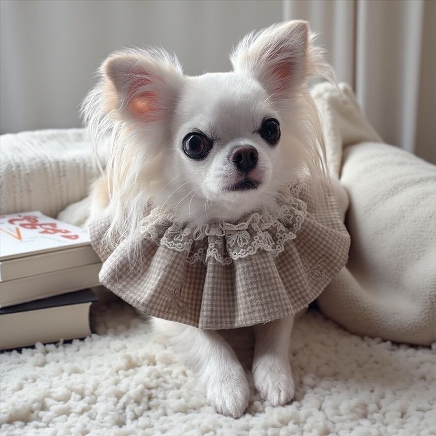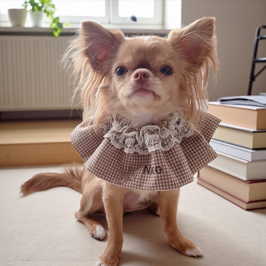 (※我が家のにこちゃんは首周りサイズ20cm→首回りサイズ約23cmを着用しています)