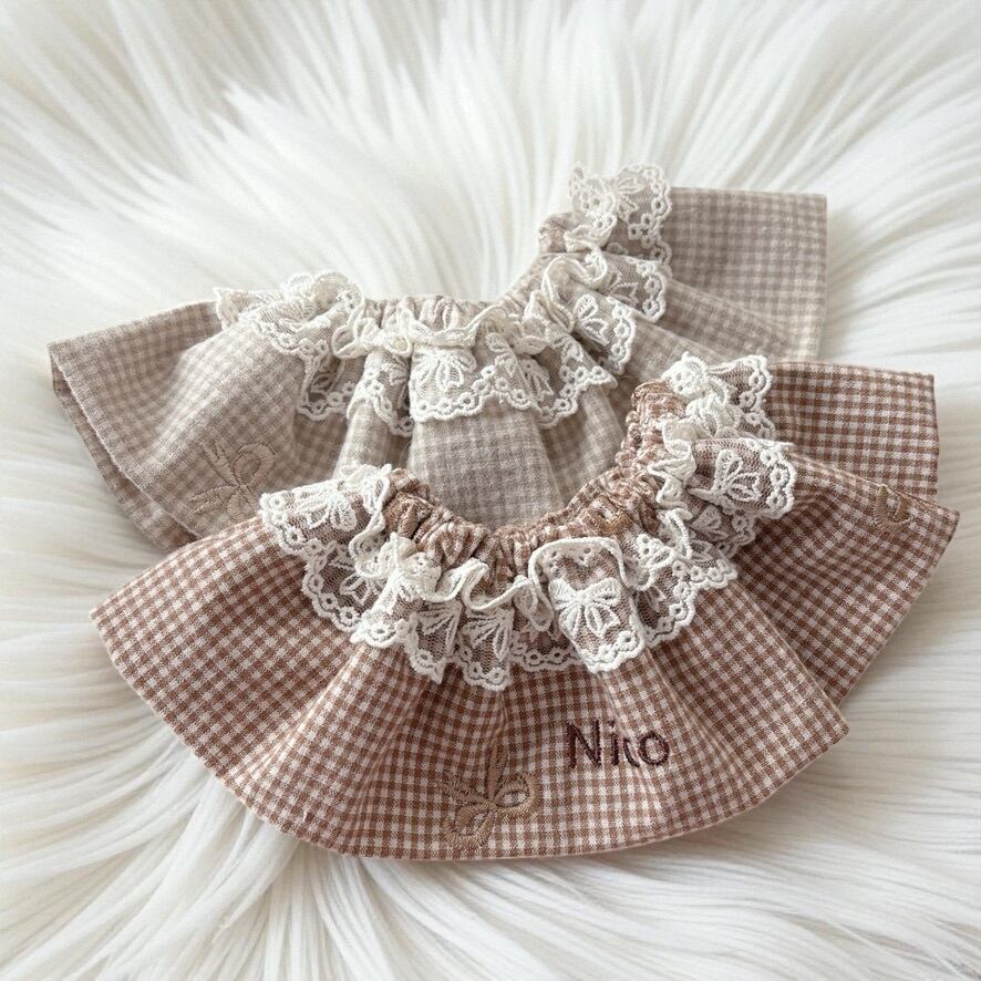 ギンガムチェック ribbon brown or beige cape ♡ / うちの子刺繍/スタイ/ケープ/ネーム/バースデースタイ/お誕生日スタイ