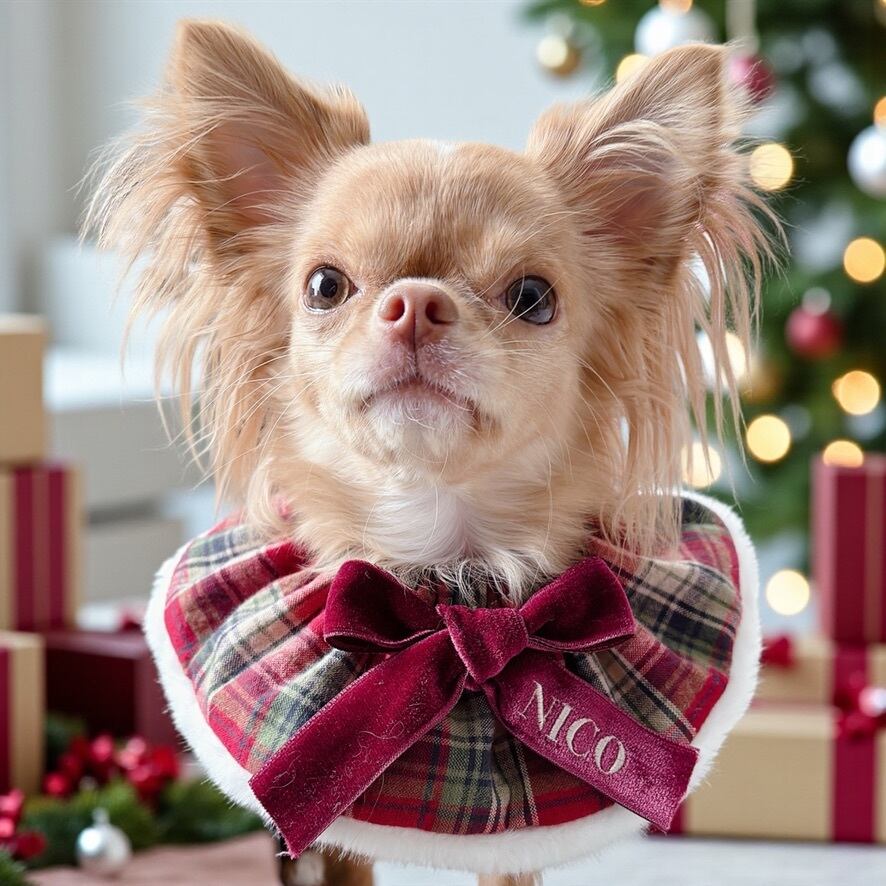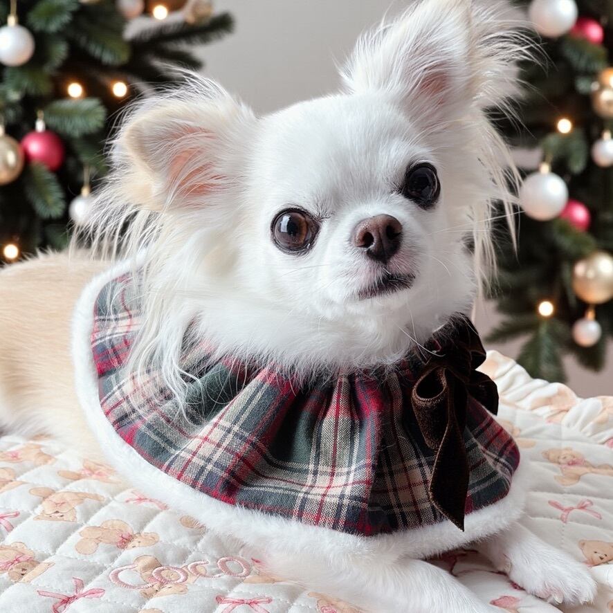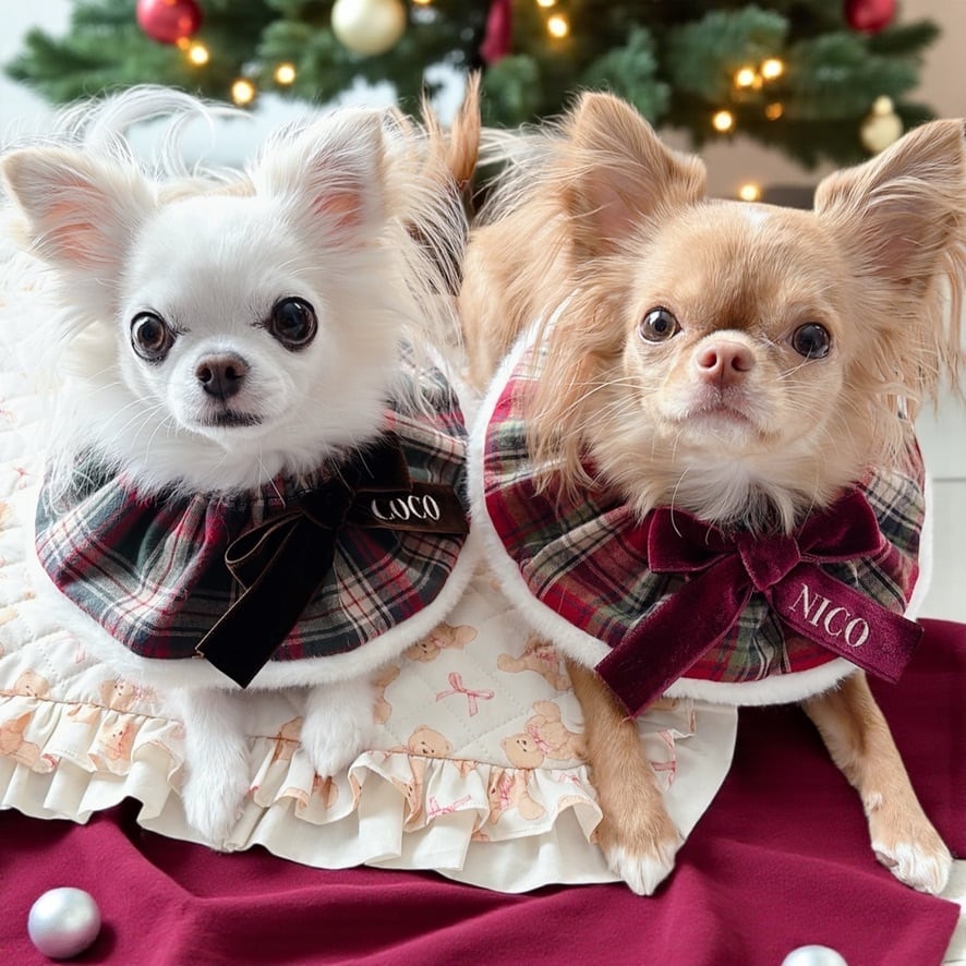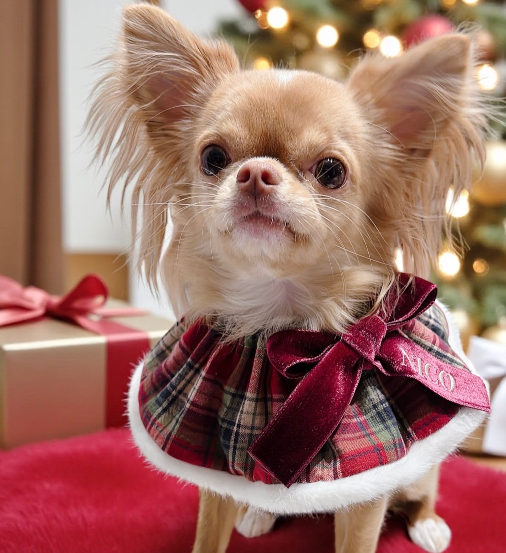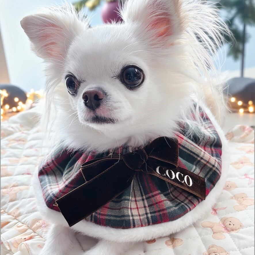 winter check cape -red / green- ♡ / うちの子刺繍/スタイ/ケープ/ネーム/バースデースタイ/お誕生日スタイ/ おしゃれ/犬/クリスマス/お誕生日
