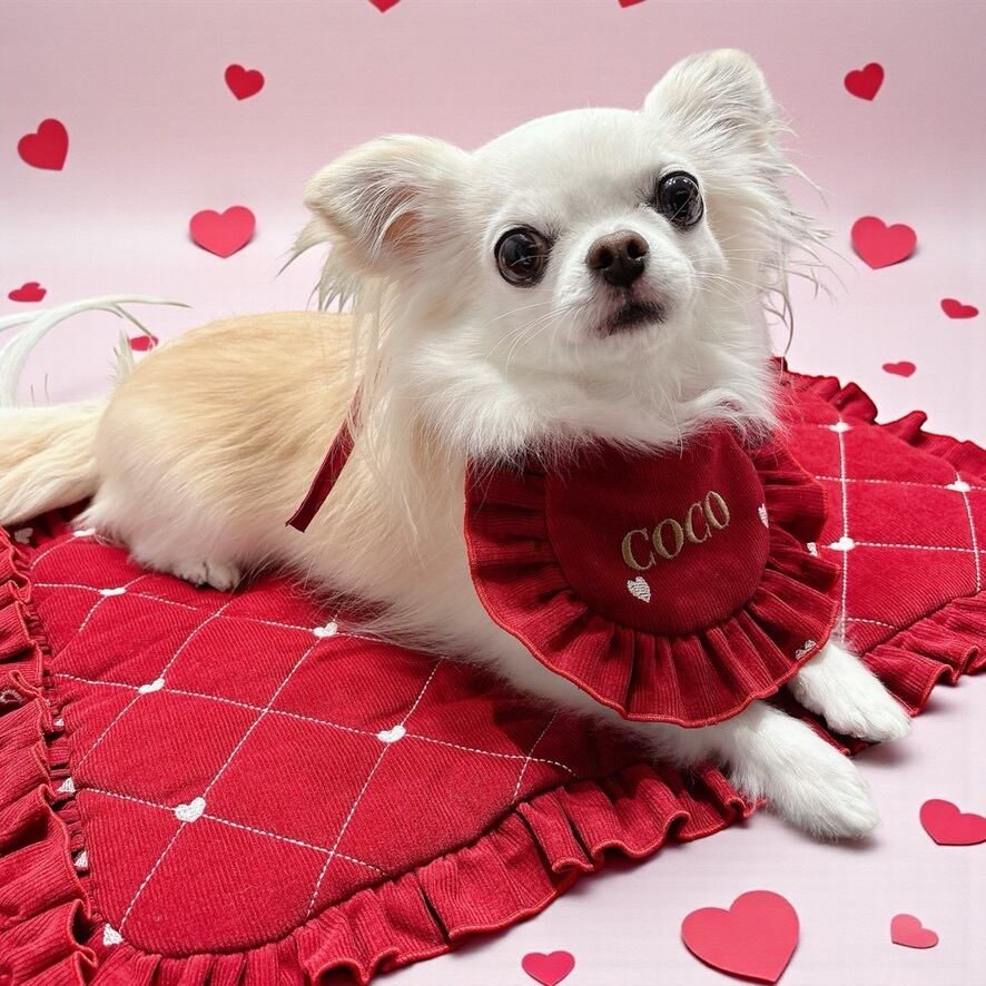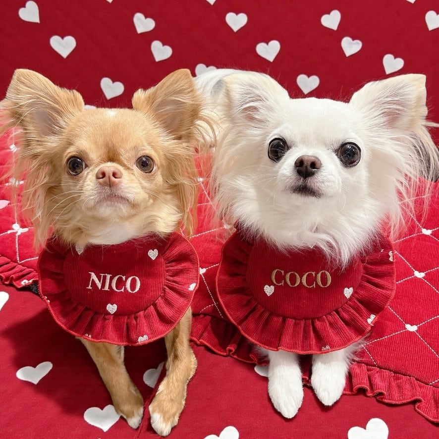 red heart bib ❤︎" / うちの子刺繍/スタイ/ケープ/ネーム/バースデースタイ/お誕生日スタイ/ おしゃれ/犬/バレンタイン