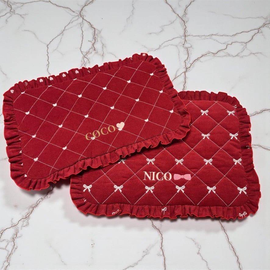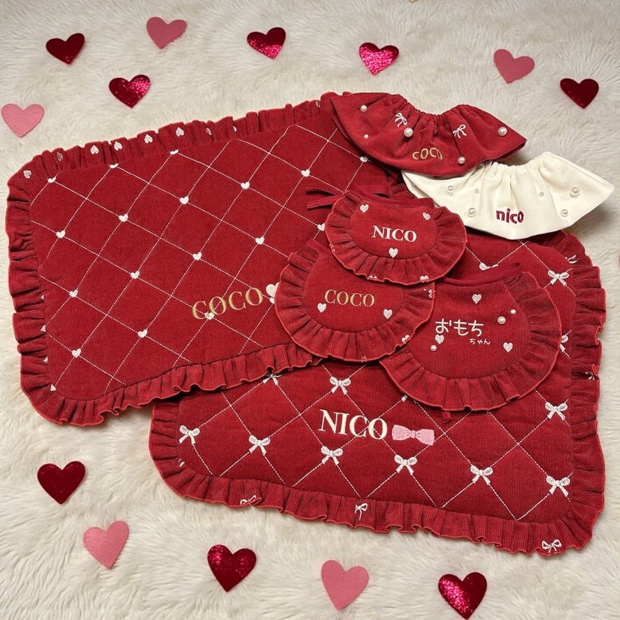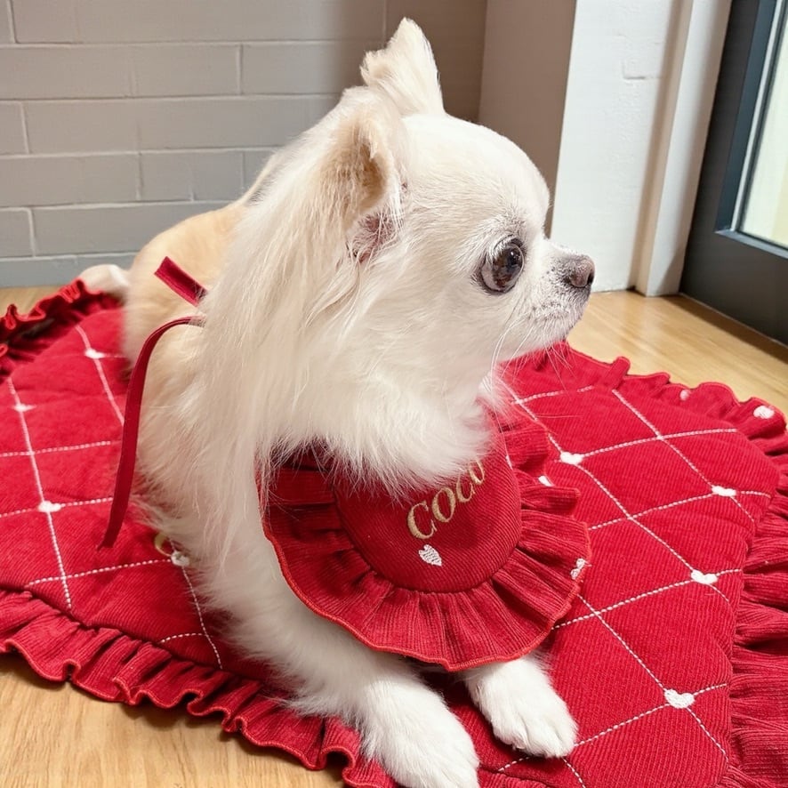 わんこが映えるカフェマット - heart or ribbon -- /うちの子刺繍/うちの子/カフェマット/お出かけ/お散歩 / 犬